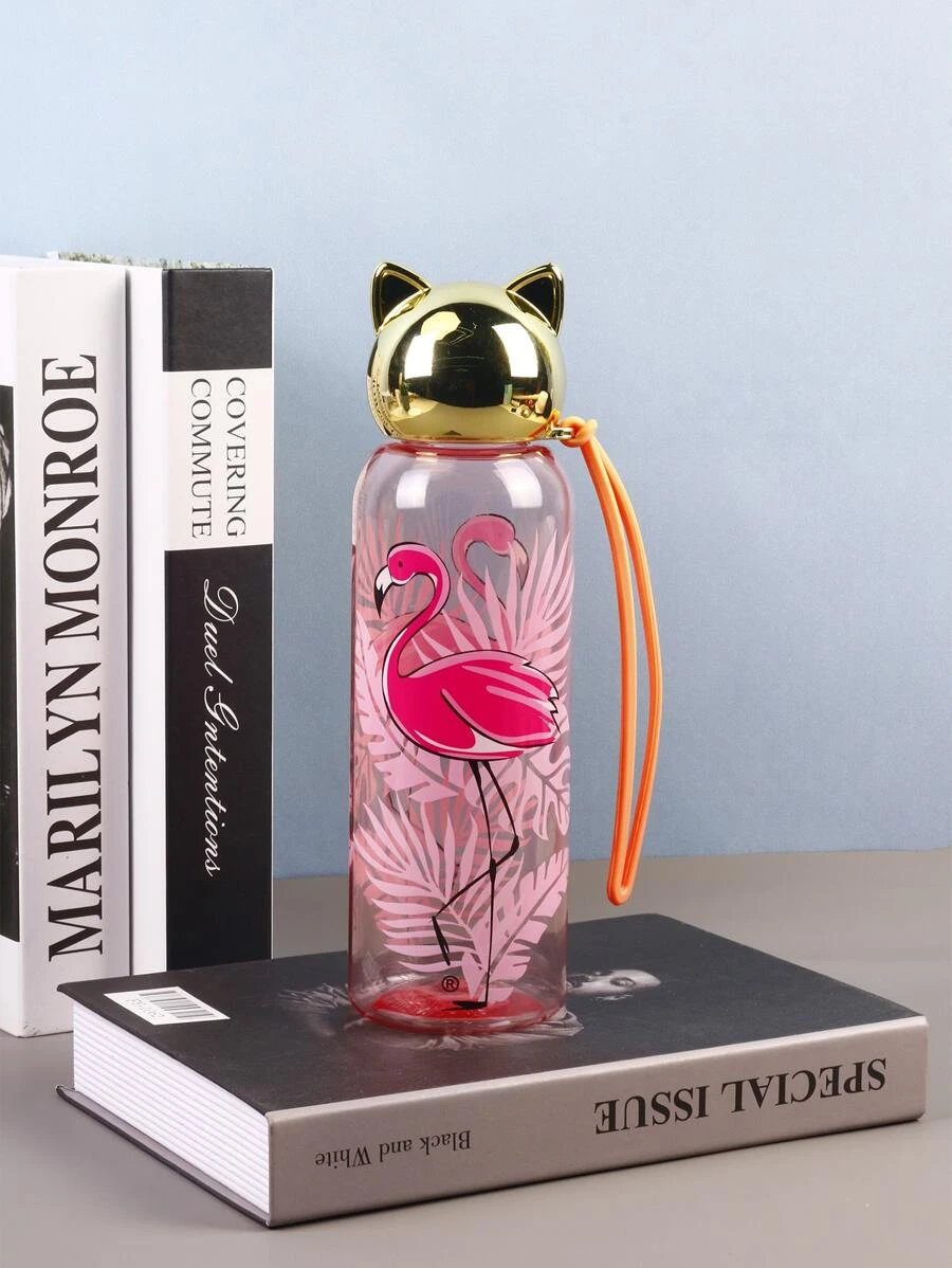 ขวดน้ำกีฬา น้ำ สร้างสรรค์ การ์ตูน ตกแต่ง หู ลาย นกฟลามิงโก พกพาได้ สำหรับ กลางแจ้ง 1 ชิ้น pp-82
