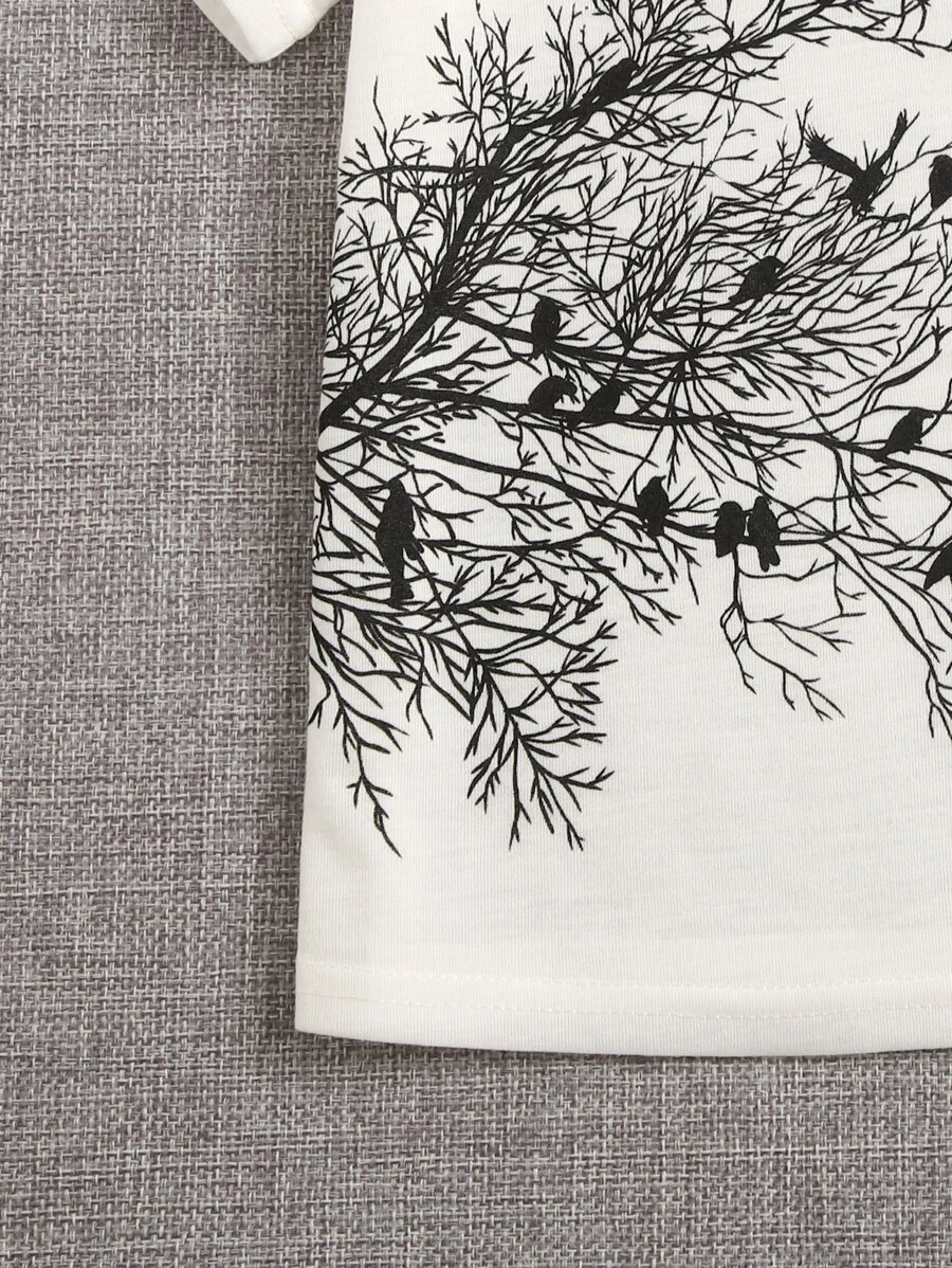 เด็กผู้ชาย ต้นไม้ & ลาย นก เสื้อยืด & แพทช์ ตัวอักษร สายรัดเอว กางเกงขาสั้น b-59