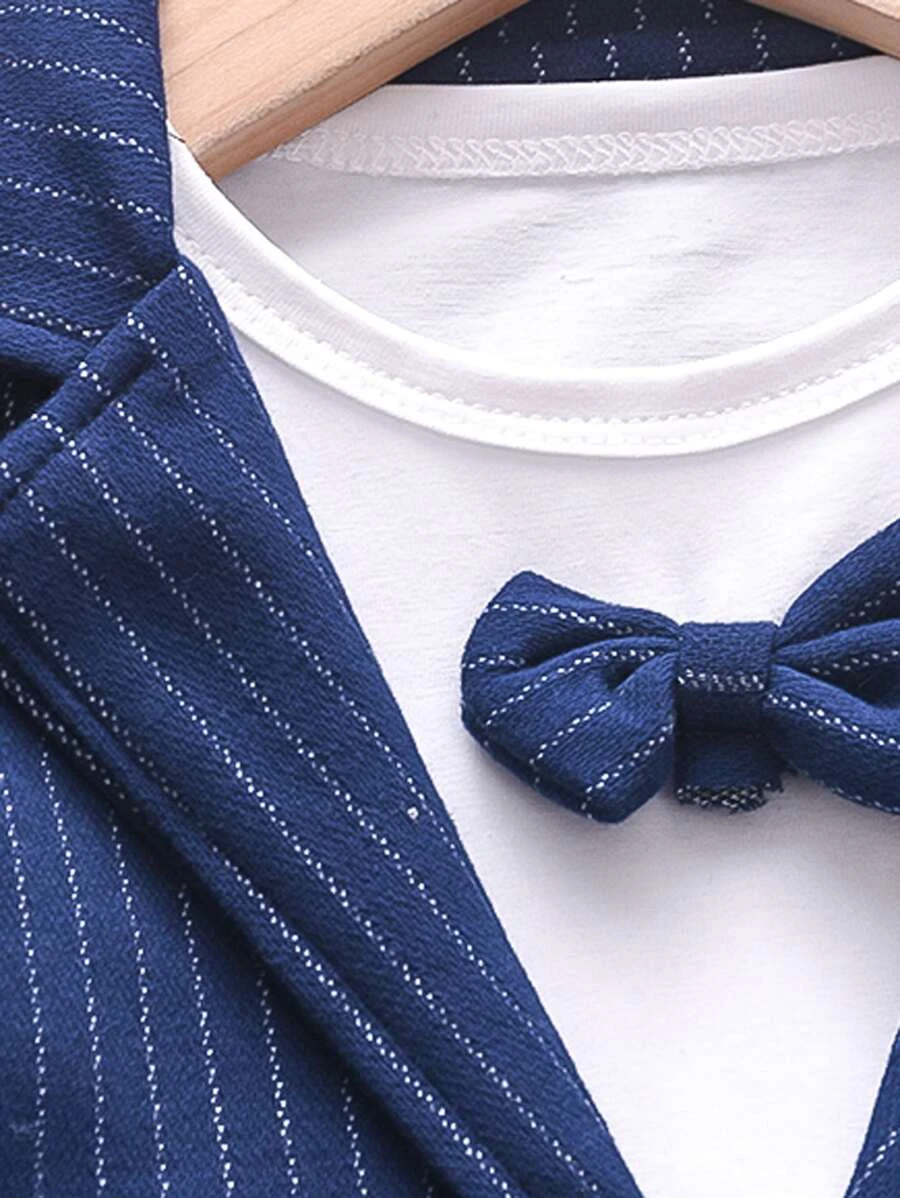 เด็กผู้ชายวัยหัดเดิน ตกแต่งลายปะ ลายทาง เสื้อสูท & โบว์หน้า เสื้อ & กางเกงขายาว b-3