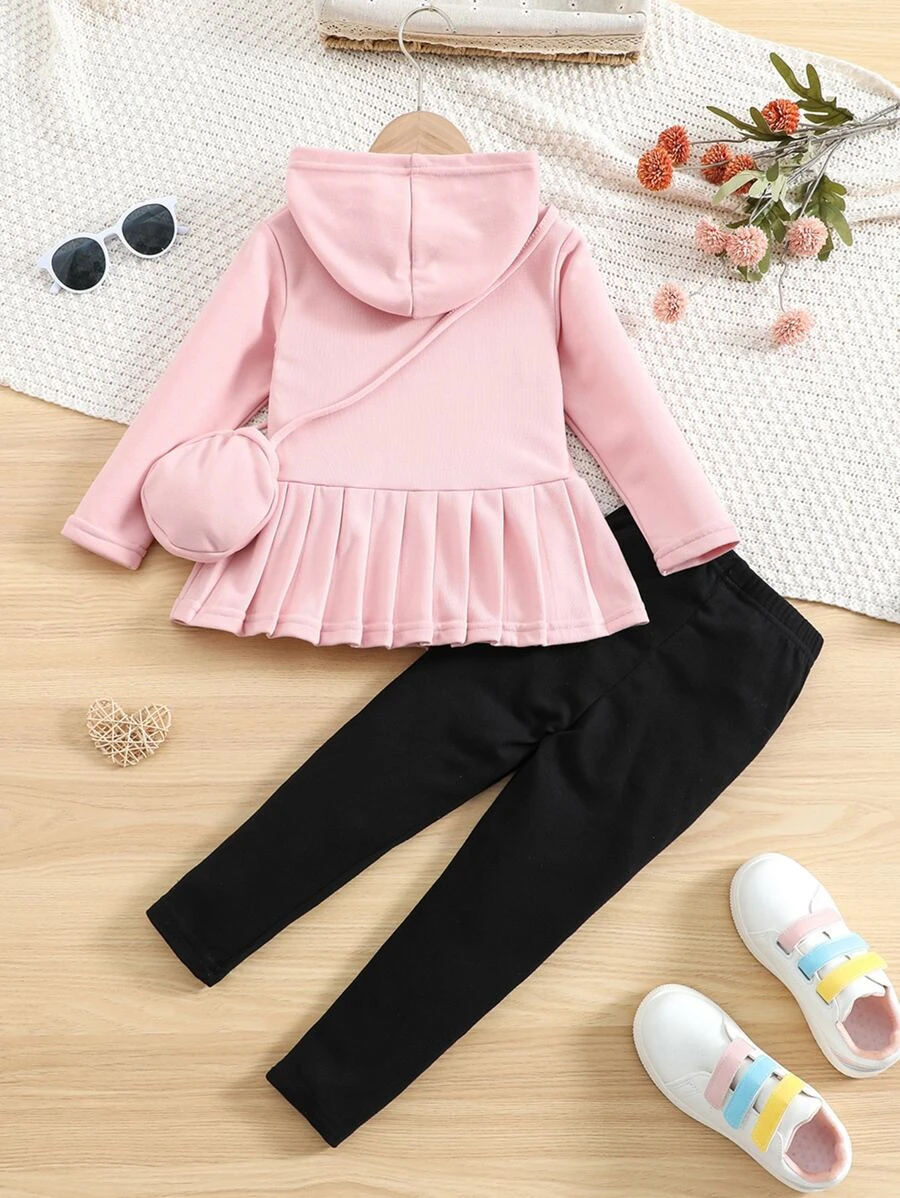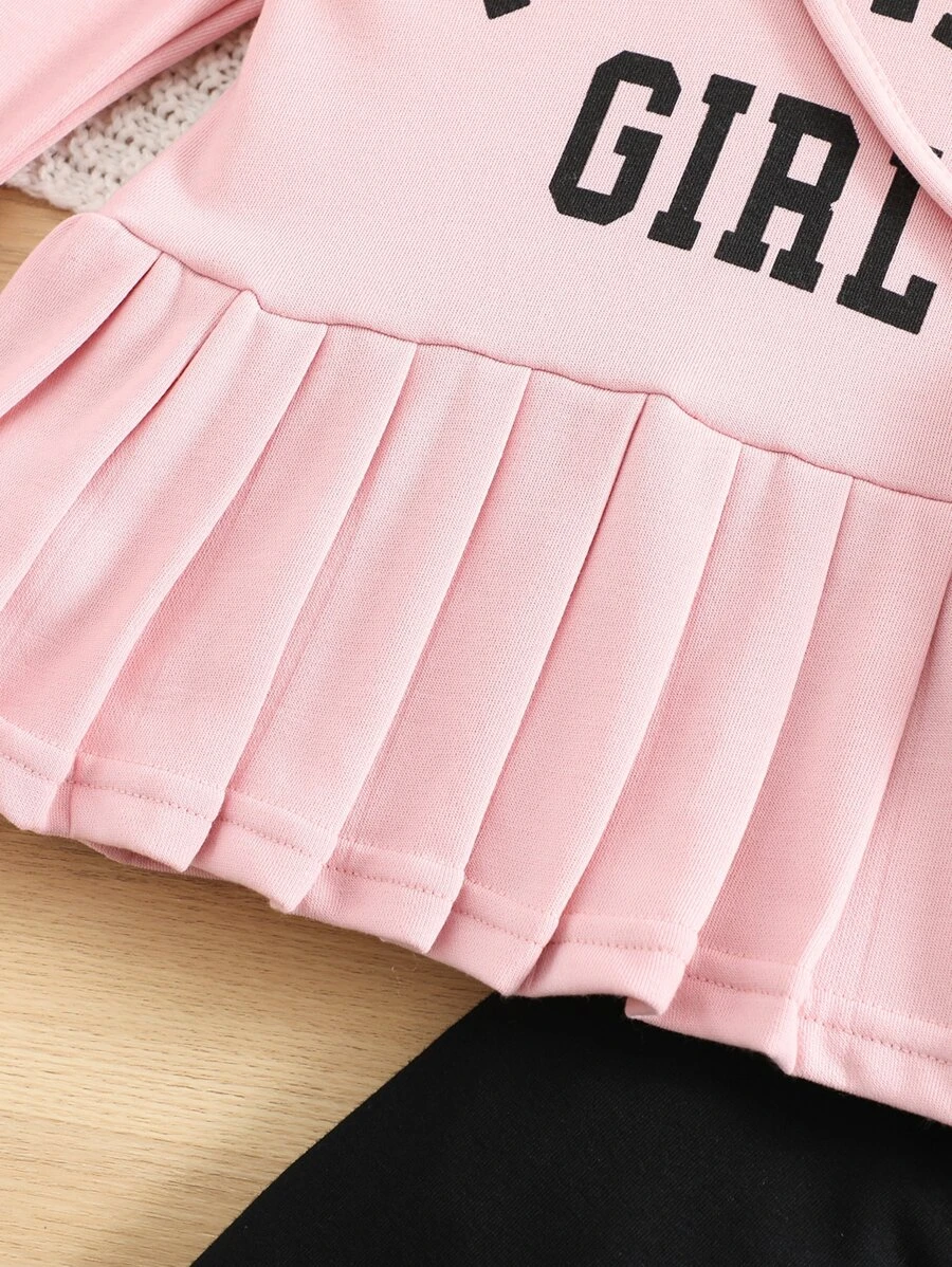 เด็กผู้หญิง ชุด เสื้อฮู้ด & เลคกิ้ง พิมพ์ ตัวอักษร ชายกระโปรงพลีท a-91
