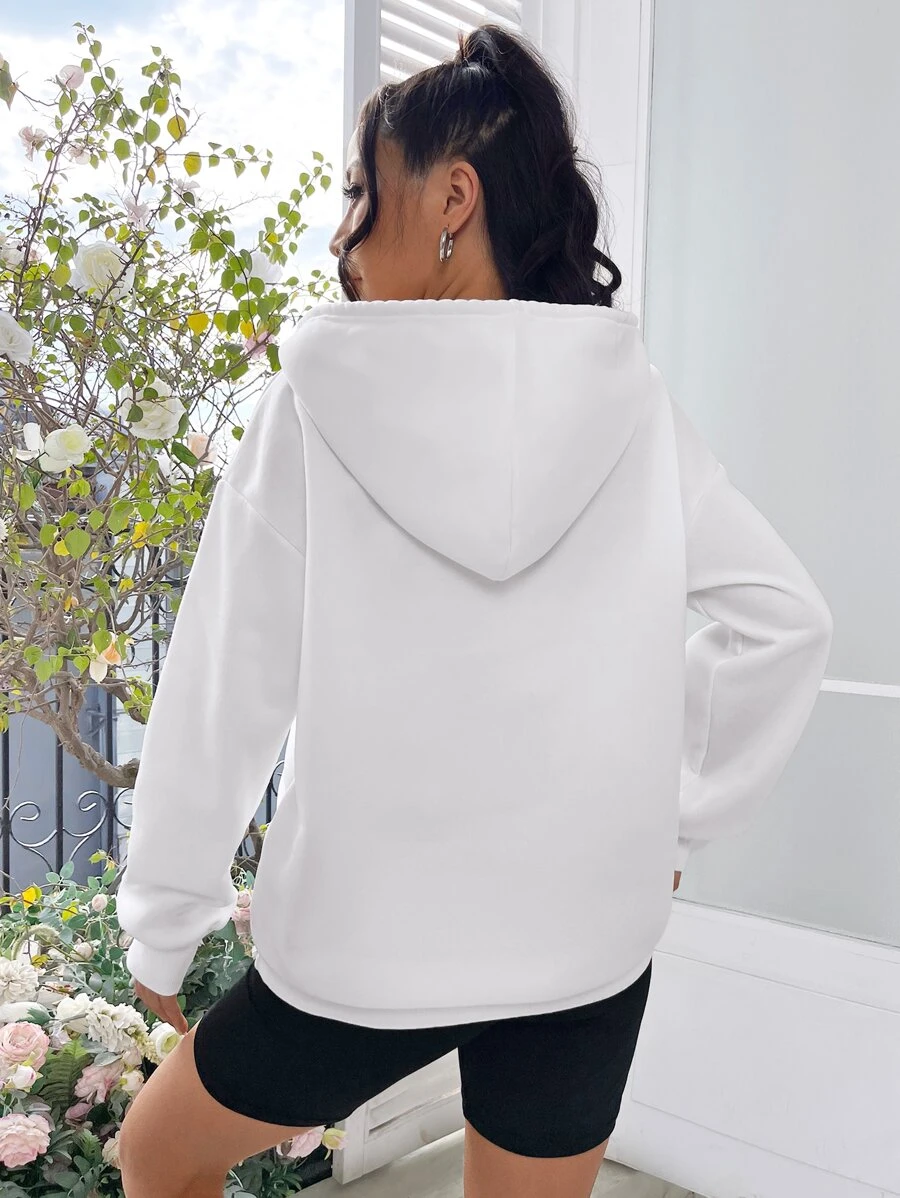 ฮู้ดดี้ หัวใจ & พิมพ์ สโลแกน ไหล่ตก เชือกรูด cc-39