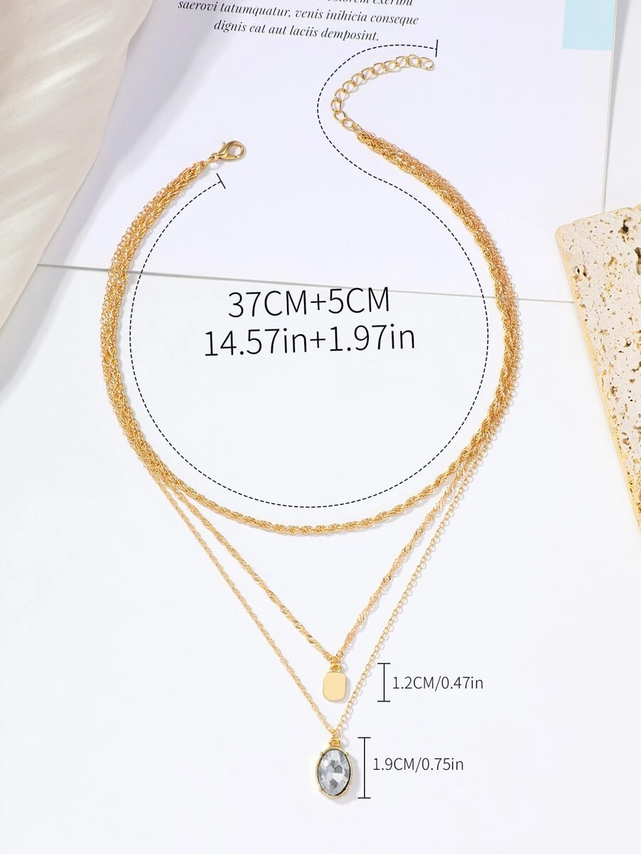 สร้อยคอ เลเยอร์ พลอยเทียม วงรี & สี่เหลี่ยม จี้ kk-130