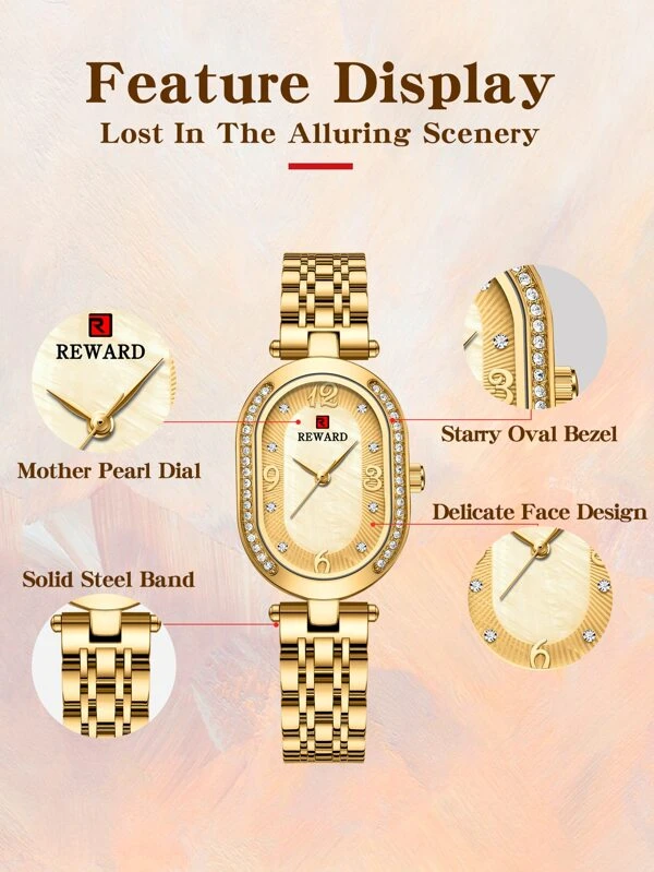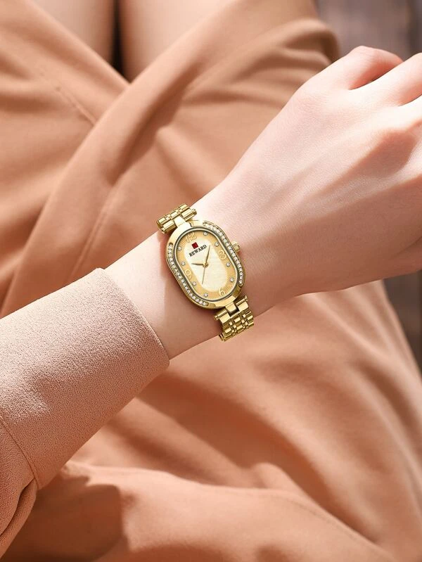 นาฬิกาควอตซ์ ตกแต่ง พลอยเทียม วงรี ตัวชี้ น-0127