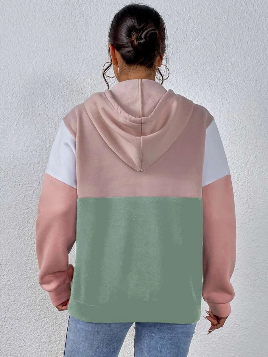 ฮู้ดดี้ บล็อคสี ซิปครึ่งตัว เชือกรูด ซับในอุ่น cc-47