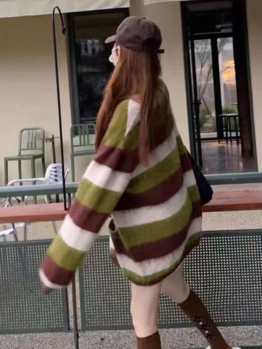 คาร์ดิแกน ลายแถบสี กระเป๋าคู่ โอเวอร์ไซส์ i-84