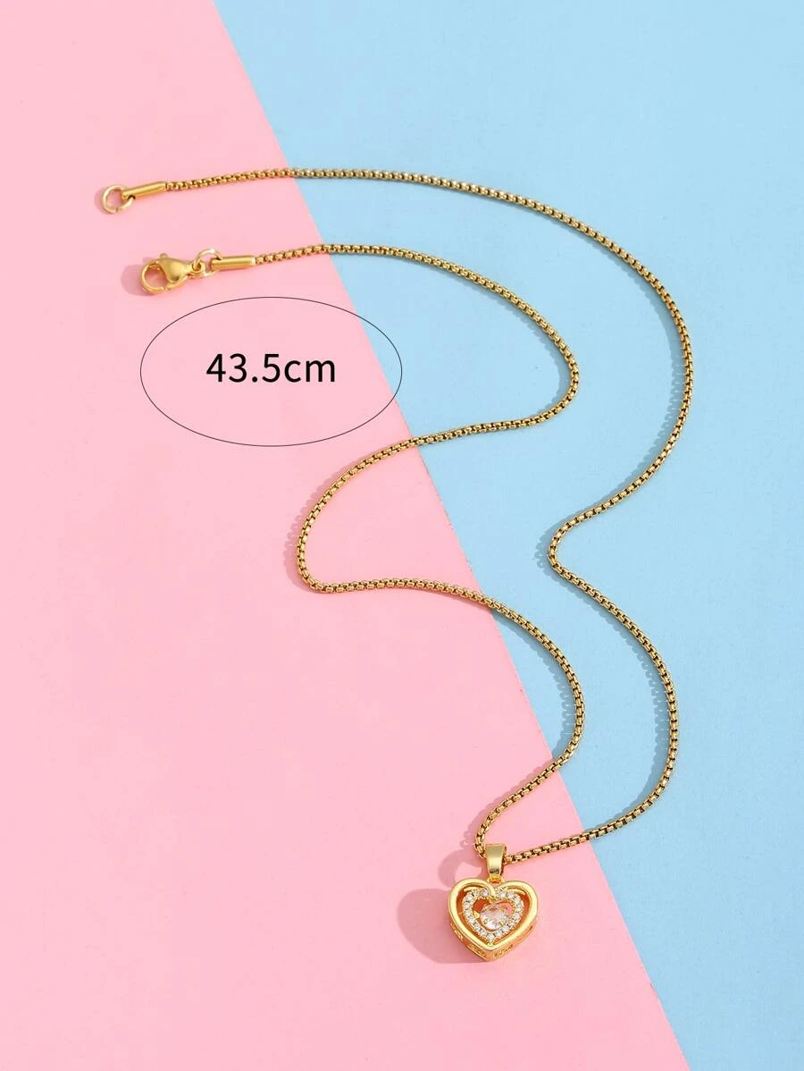 เด็กผู้หญิง สร้อยคอ ตกแต่ง พลอยเทียม จี้ หัวใจ kk-112