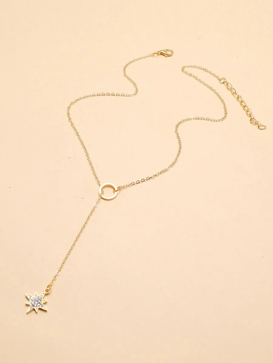 สร้อยคอ ติดเพชร ลายวงกลม และ ลายดวงดาว สายทิ้งตัว kk-133