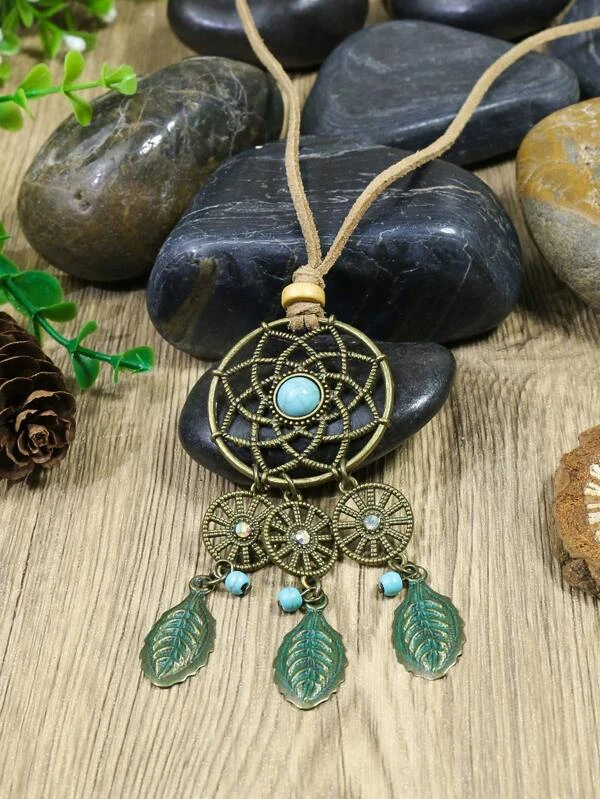 จี้สร้อยคอ ติดเพชร และ ลายใบไม้ ทรงกลม kk-228
