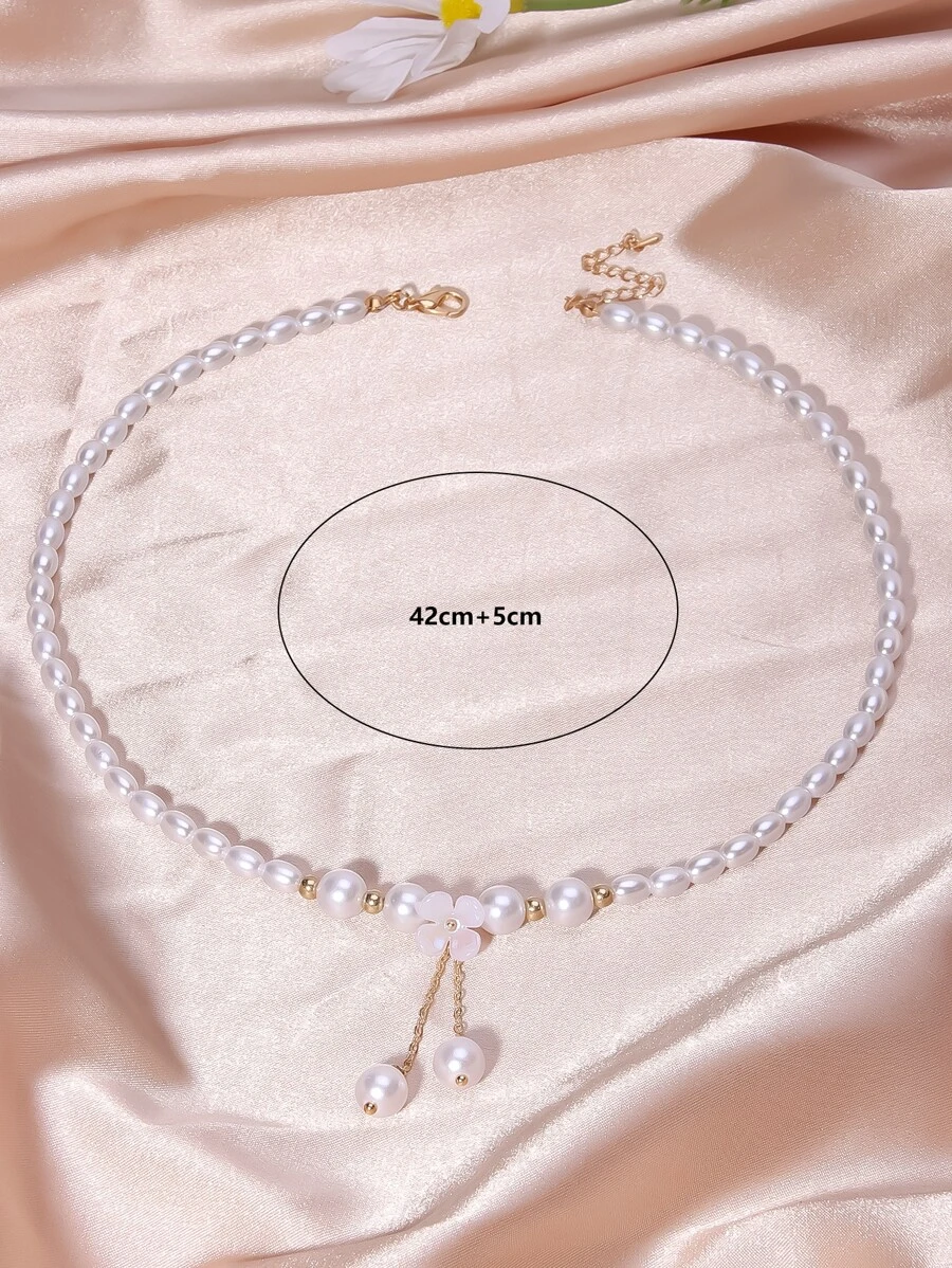 สร้อยคอ ดอกไม้ & จี้ ไข่มุกเทียม kk-97