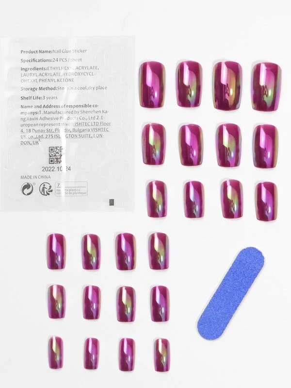 เล็บปลอม ยาว สี่เหลี่ยม & เทปกาว 1 แผ่น & ตะไบเล็บ 1 ชิ้น 24 ชิ้น c-9