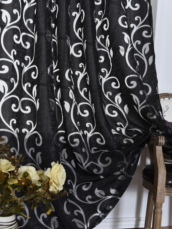 ผ้าม่าน ผ้าโปร่ง เลื่อน ลวดลาย ผ154