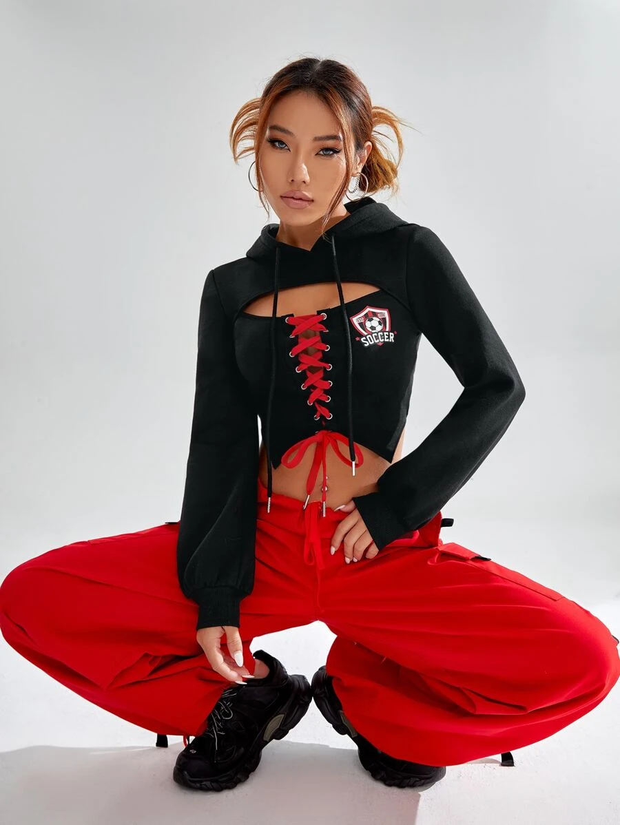 ฮู้ดดี้ ทรงครอป ผูกเชือกด้านหน้า ตัดเว้า cc-49