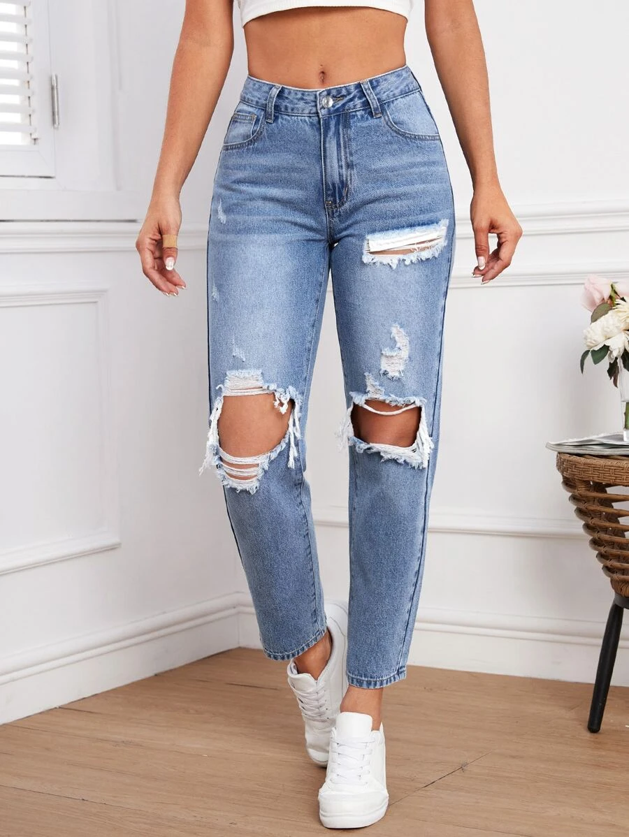 กางเกงยีนส์ แต่งขาด คัตเอาท์ ปลายรุ่ย ee-94