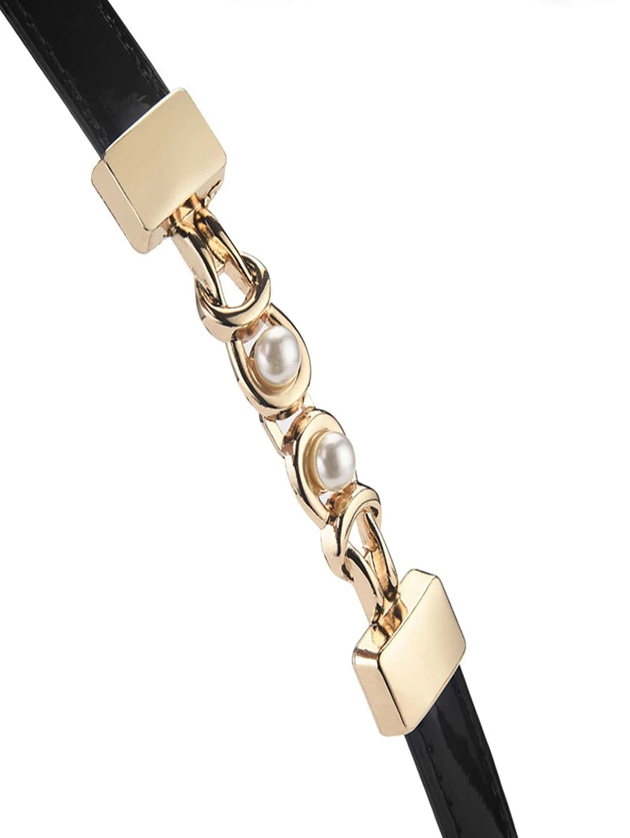 เข็มขัด ประดับ มุกเทียม หัวเข็มขัดสมมาตร l-086