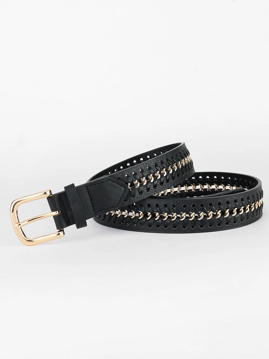 เข็มขัดบักเคิล แต่งโซ่ งานถัก ทรงเหลี่ยม l-088