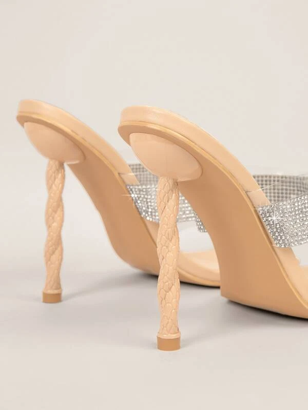 รองเท้าส้นสูง เปิดนิ้วเท้า พลอยเทียม สายหนัง บิดเกลียว l-105