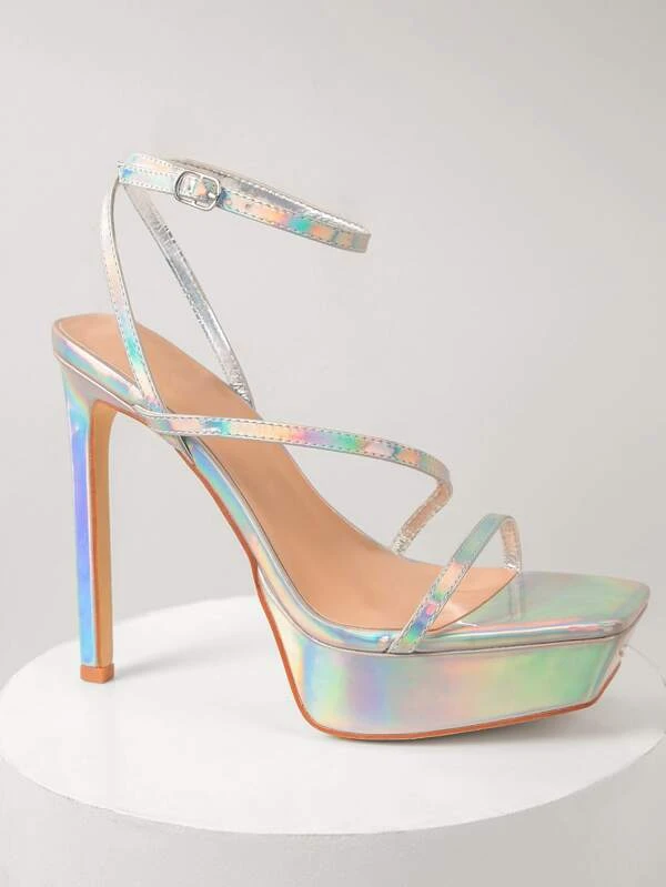 รองเท้าส้นสูงกริช เปิดนิ้วเท้า คู่ สายหนัง แพลตฟอร์ม l-62
