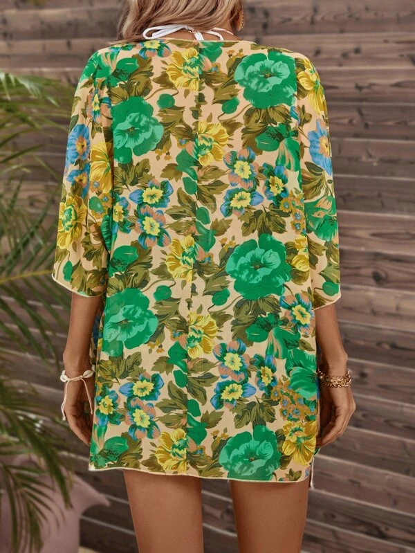 กิโมโน พิมพ์ลาย ดอกไม้ แขนค้างคาว mm-28