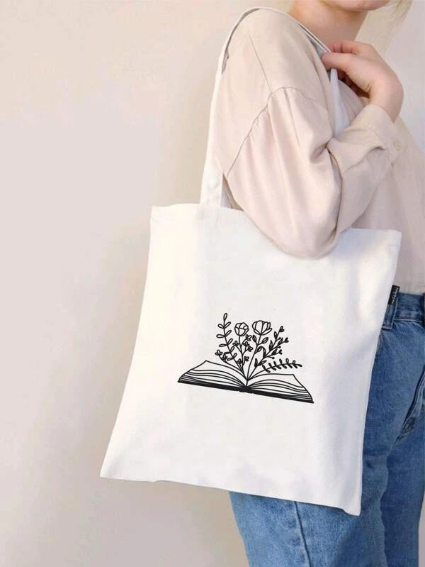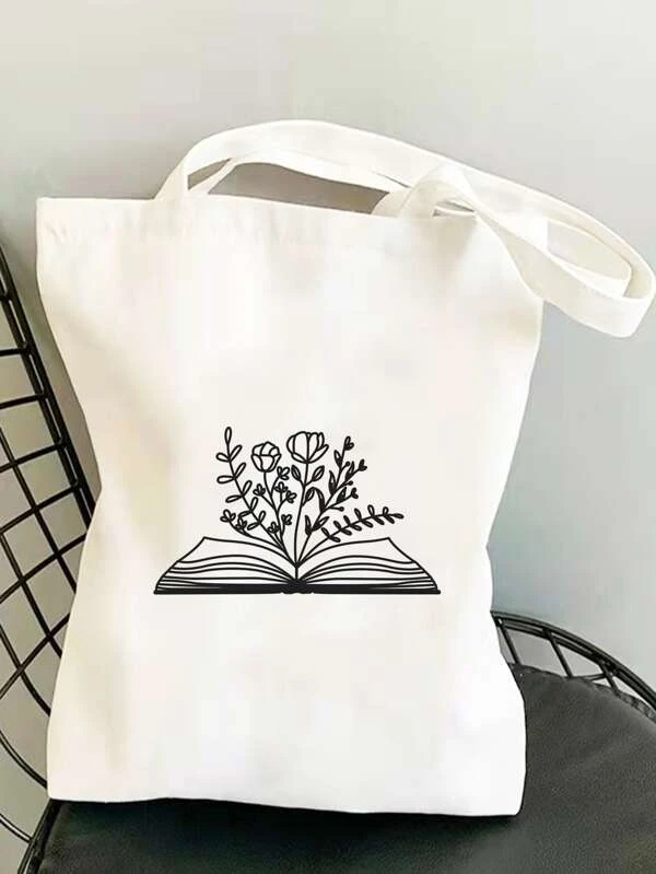 กระเป๋าช้อปปิ้ง พิมพ์ลาย หนังสือ & ดอกไม้ n-51
