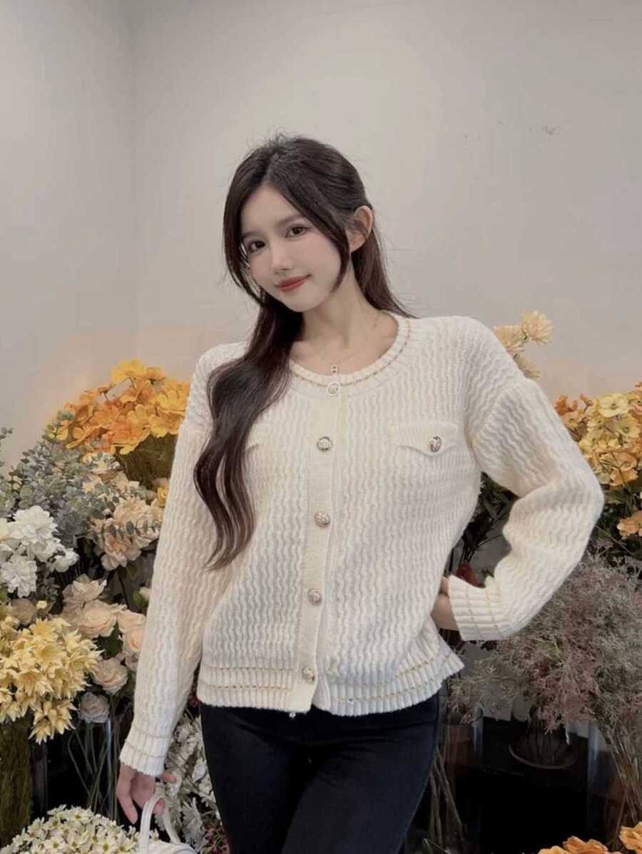 คาร์ดิแกนไหมพรม ผ่าหน้า ดีเทลกระเป๋าหลอกช่วงอก i-2