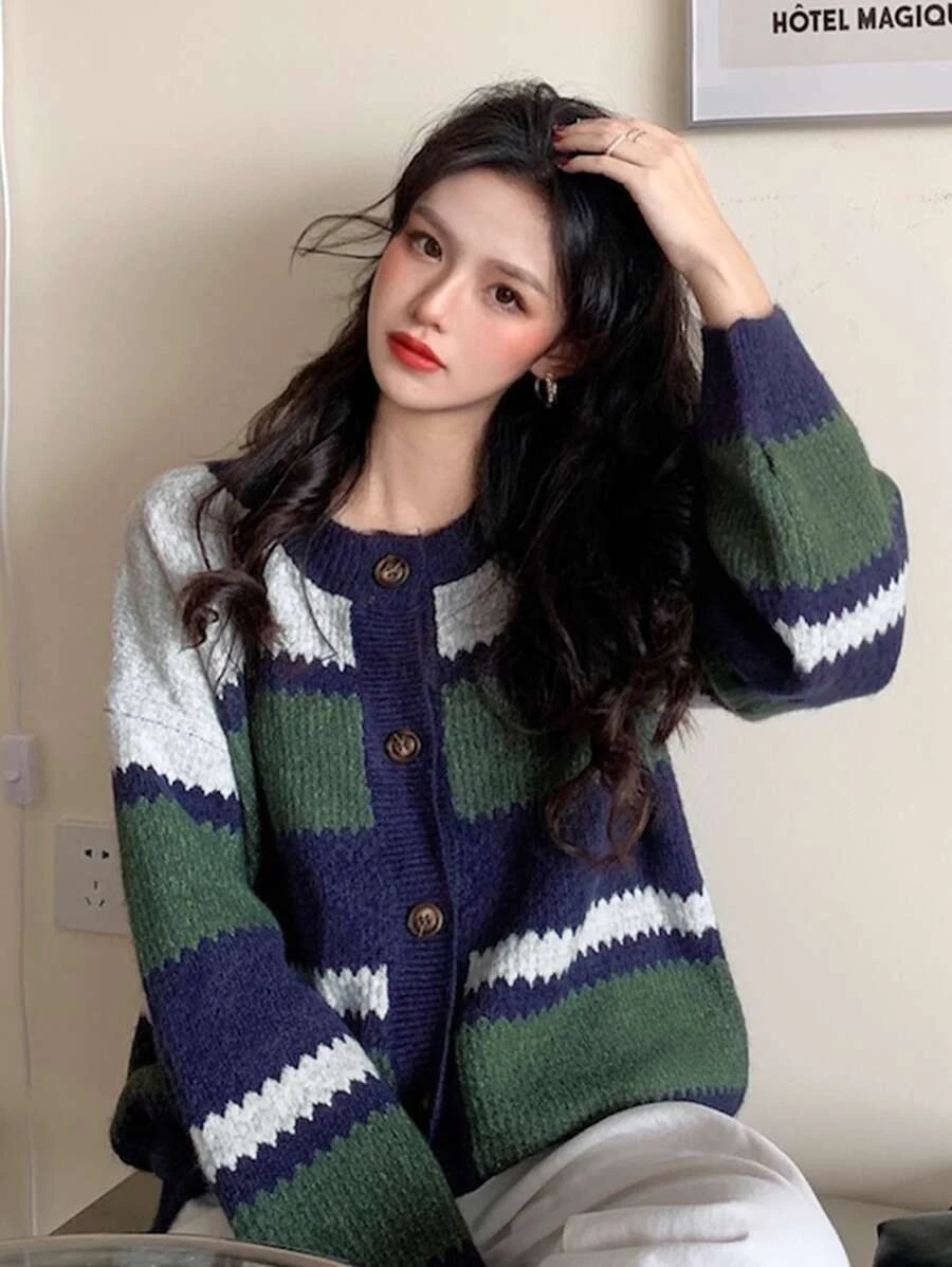 คาร์ดิแกน บล็อคสี ไหล่ตก โอเวอร์ไซส์ i-60