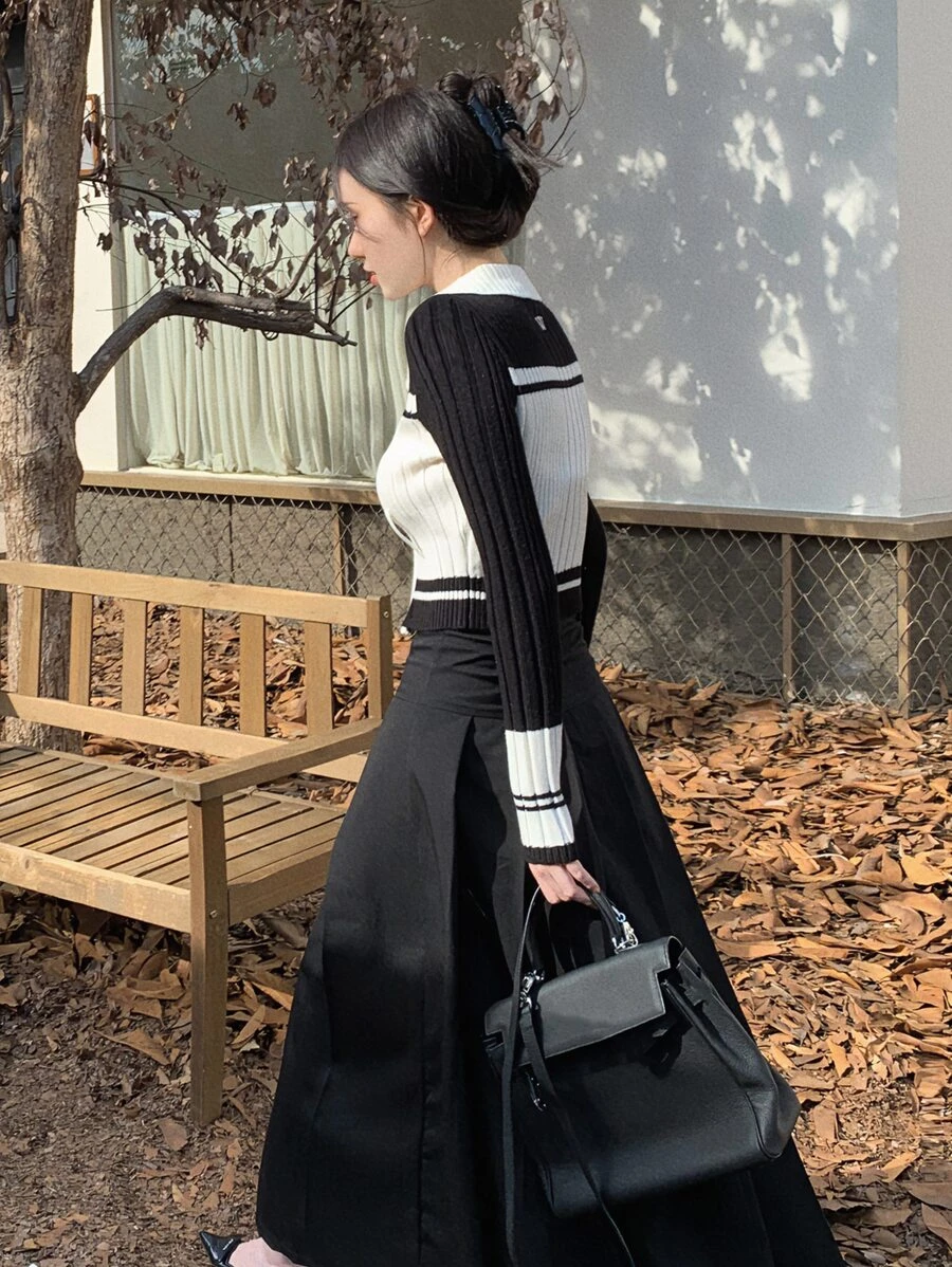 เสื้อคาร์ดิแกน ครอป บล็อกประกบ ซิปเต็ม i-62