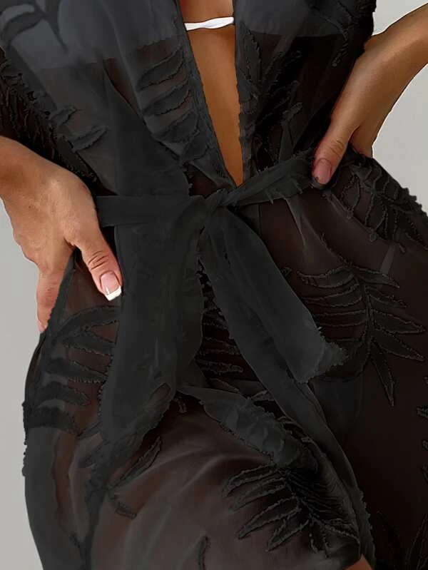 กิโมโน พิมพ์ลาย ทรอปิคอล แต่งเข็มขัด mm-143