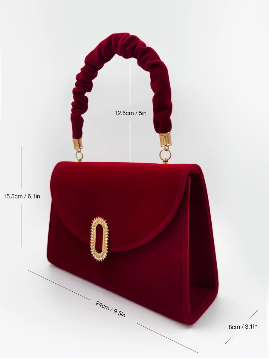 กระเป๋าสี่เหลี่ยม ตกแต่ง พลอยเทียม กำมะหยี่ v-75