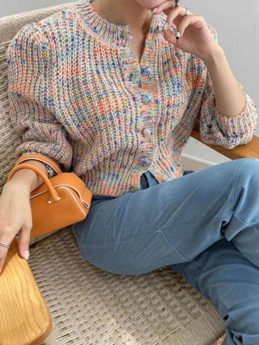 คาร์ดิแกนไหมพรมสไตล์เกาหลี ทอเล่นสีในตัว กระดุมใหญ่ i-5