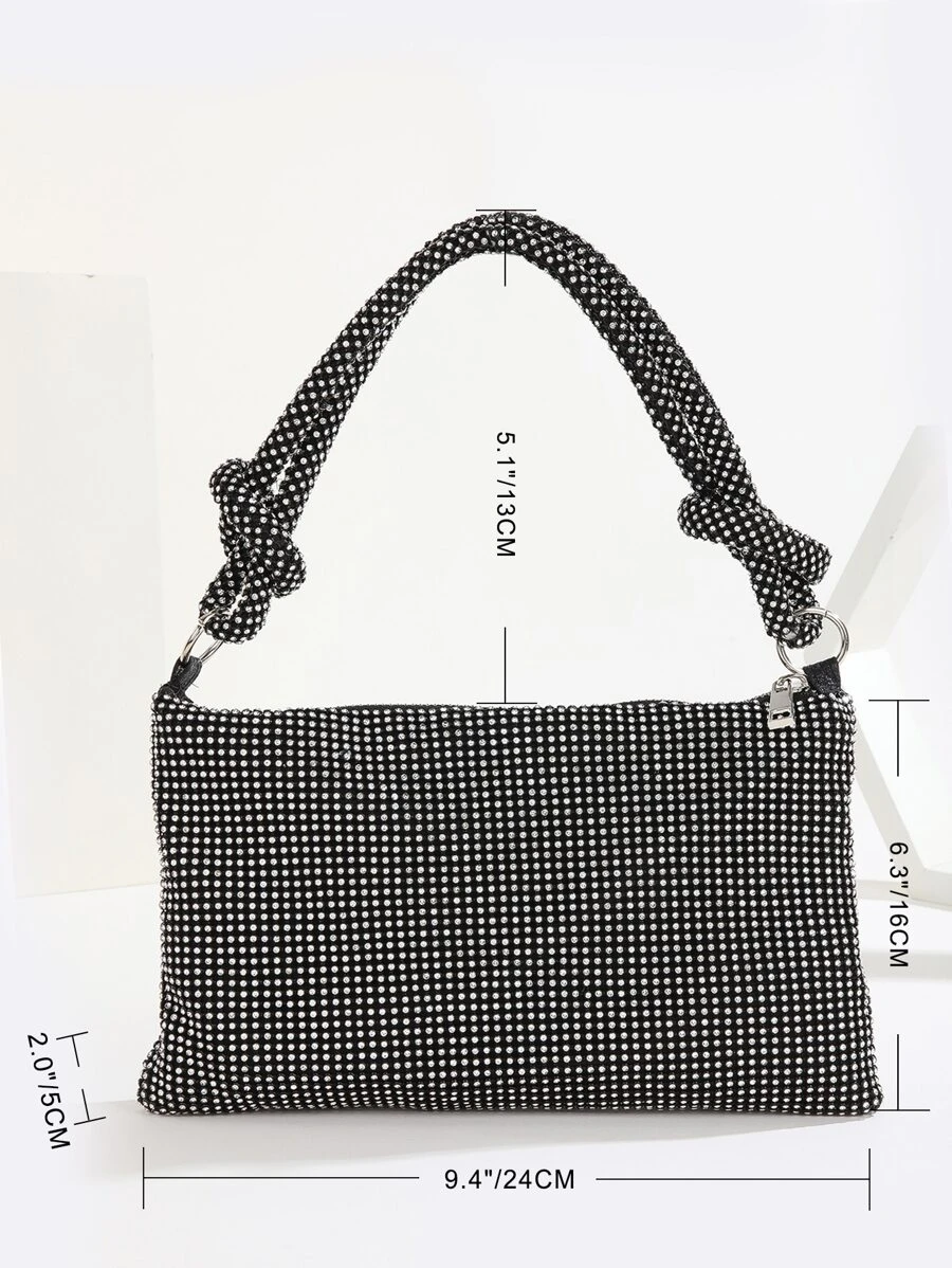 กระเป๋าคลัตช์ ลายเต็มพื้นที่ ประดับแก้วสี รายละเอียดปมv-64