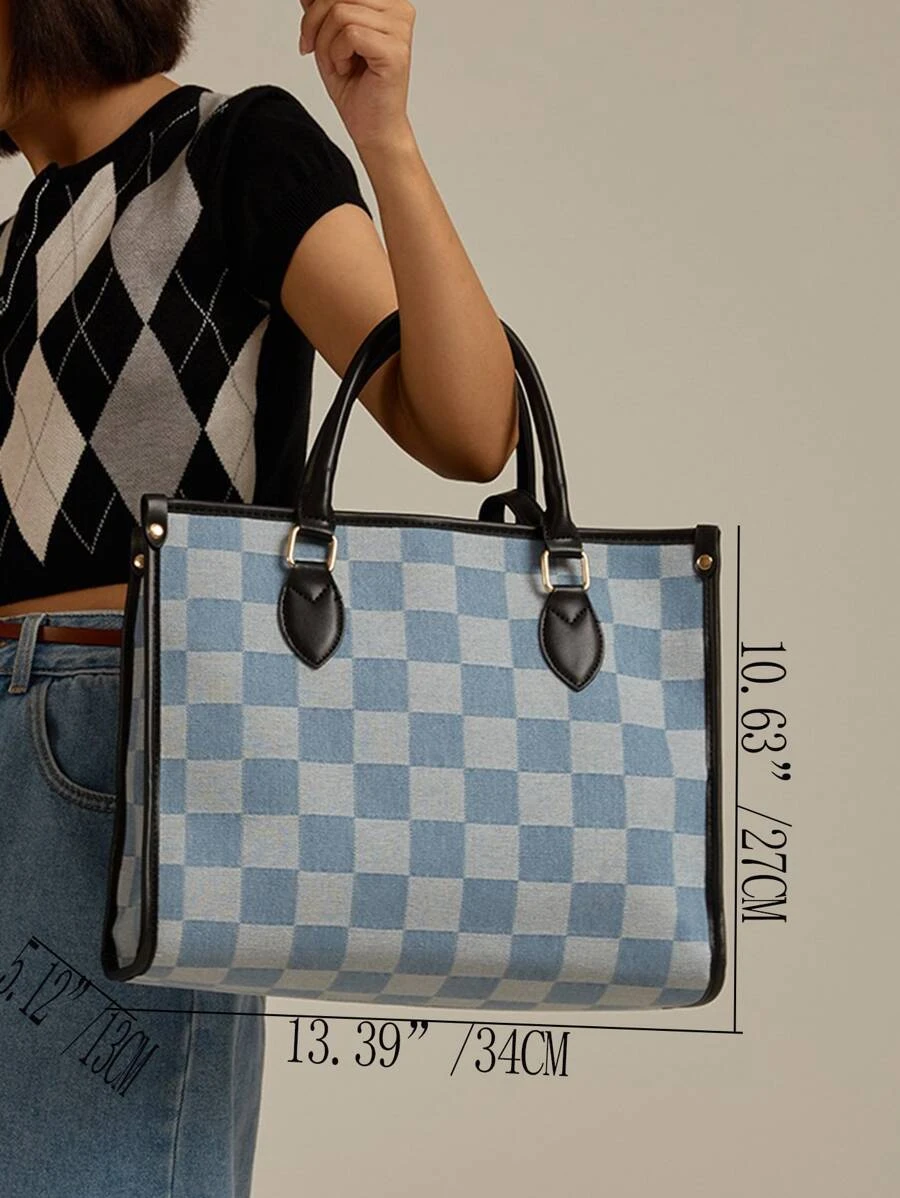 กระเป๋าถือ ลายตาราง เย็บสีตัด v-7