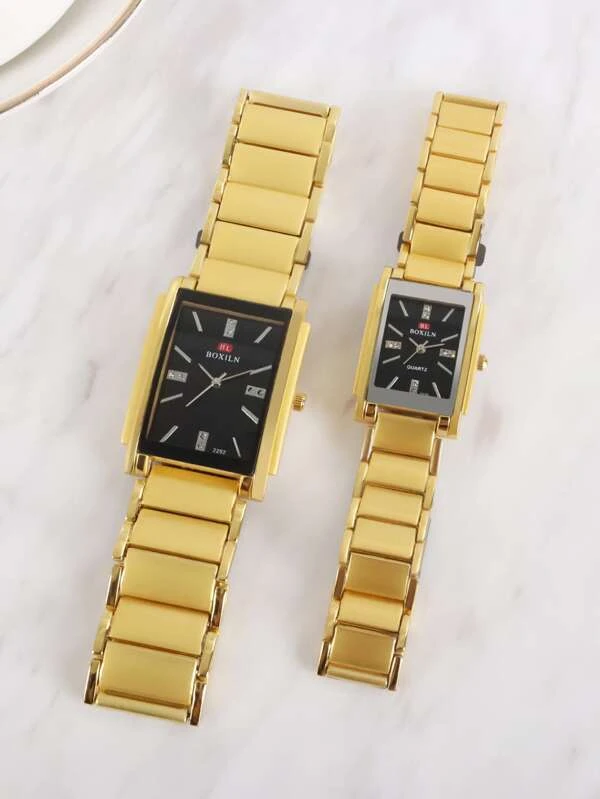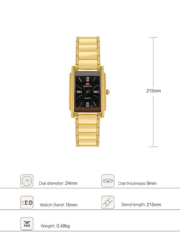 นาฬิกาข้อมือ เครื่องควอตซ์ 2 ชิ้น สไตล์มินิมอล หน้าปัดทรงสี่เหลี่ยมผืนผ้า น-0165