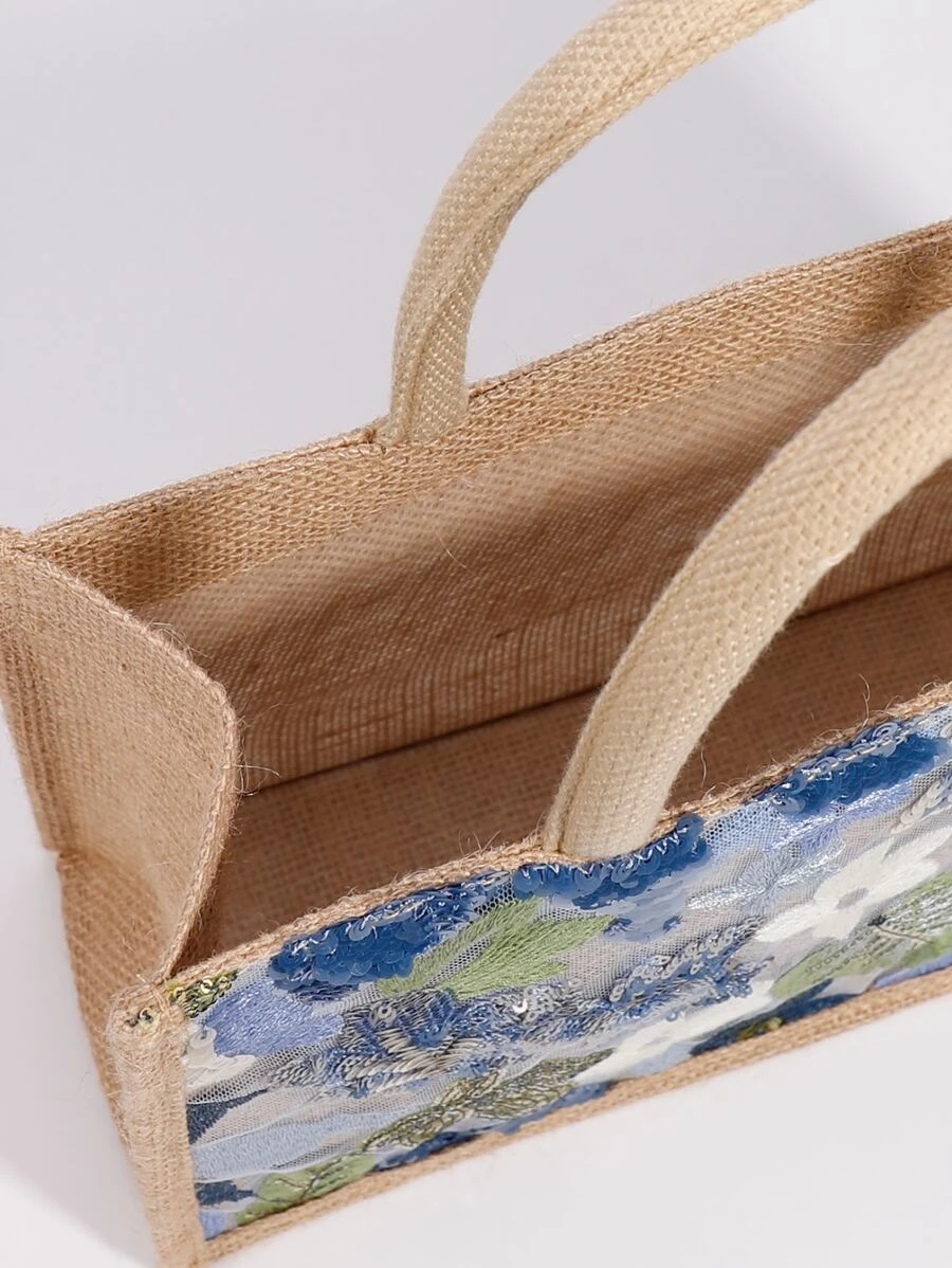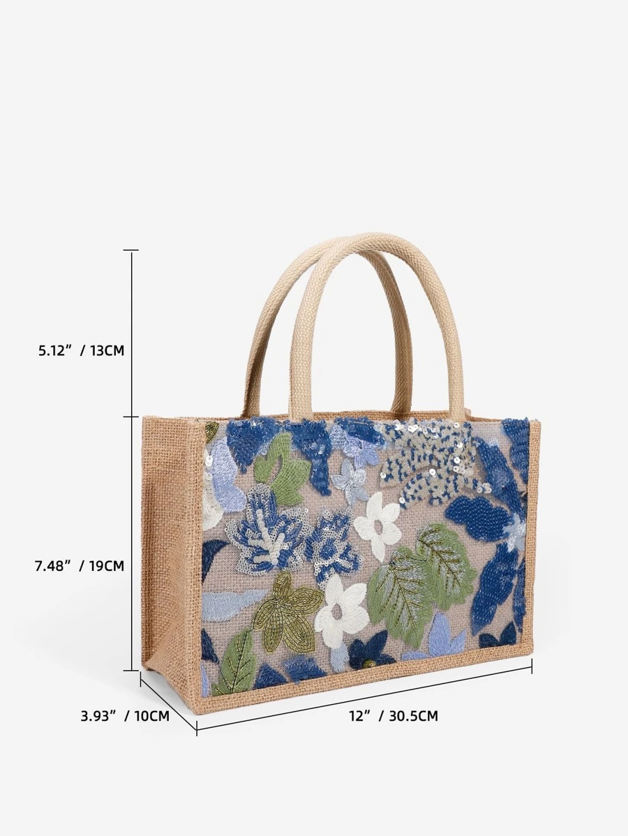 กระเป๋าหูหิ้วด้านบน ปักดอกไม้ ตกแต่งเลื่อมv-19