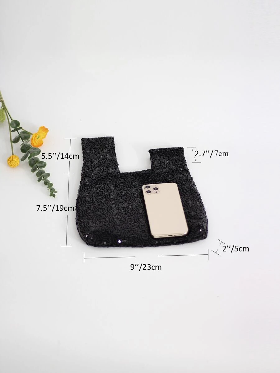 กระเป๋าทรงโฮโบ มินิมอล ตกแต่งเลื่อมv-56