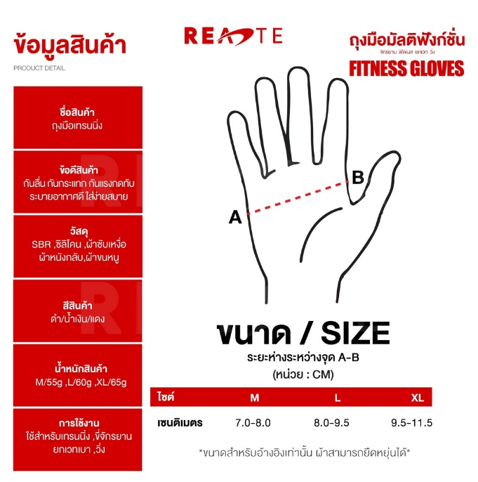- ติดตัวกันลื่น สามารถถอดถุงมือออกได้ง่าย