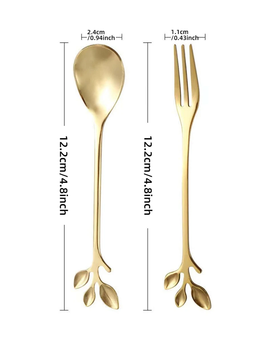 ช้อน 1 ชิ้น ลายใบไม้ และ ส้อม 1 ชิ้น hh-45