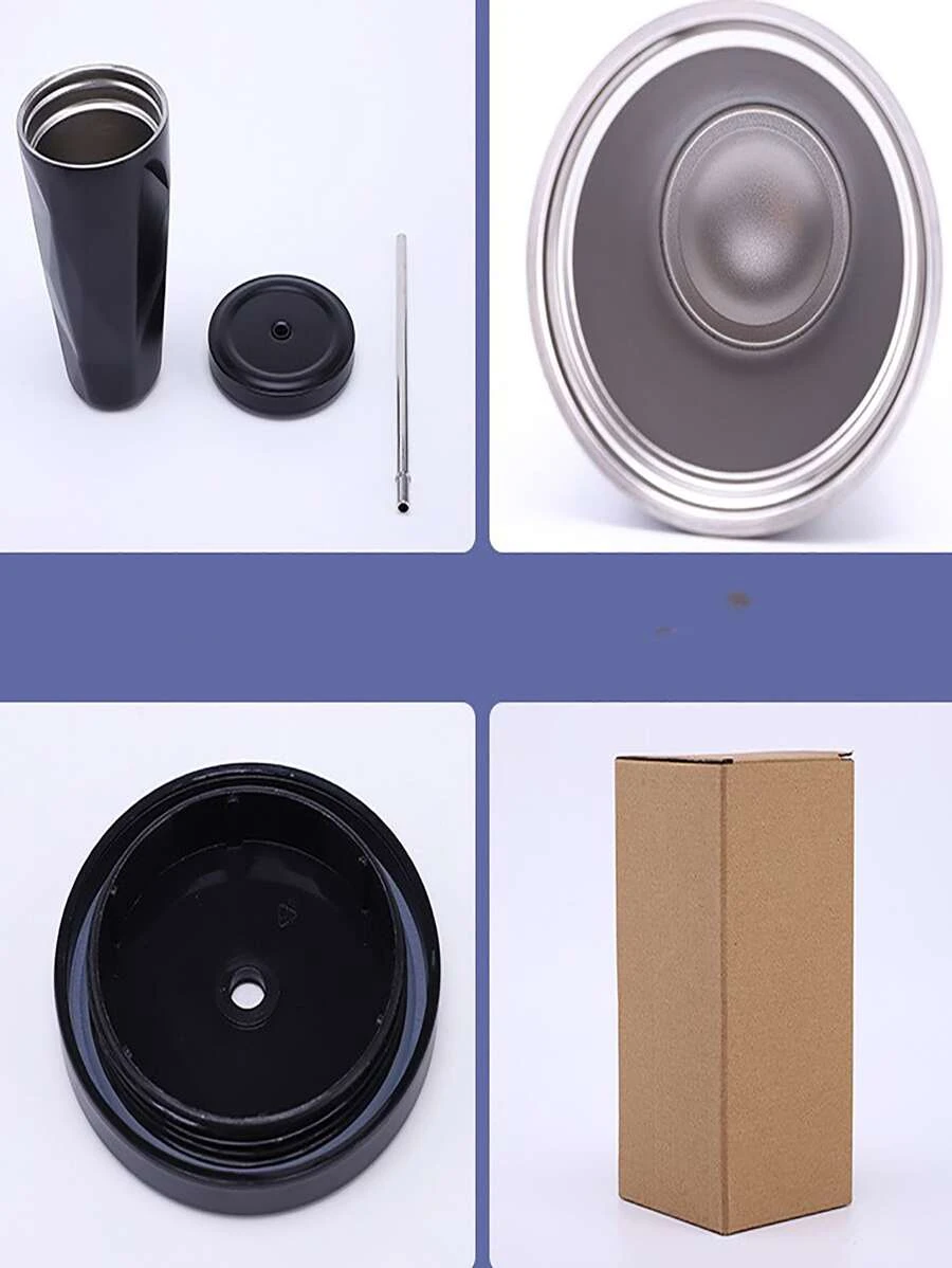 แก้วเก็บความเย็น 1 ชิ้น 480ml แบบพกพา สแตนเลส และ หลอด โมเดิร์น หลากสี เก็บความร้อน ลายขวดน้ำ สำหรับ บ้าน pp-28