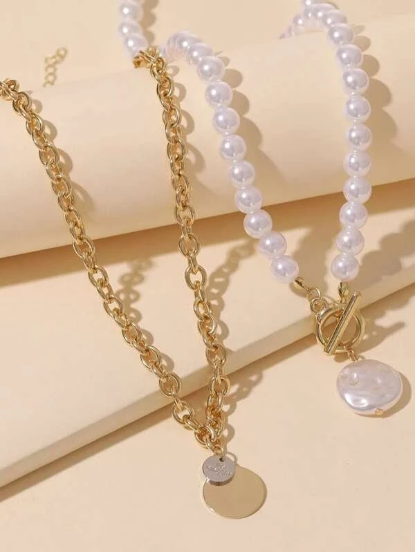 จี้สร้อยคอ 2 ชิ้น แต่งไข่มุกเทียม ทรงกลม kk-196