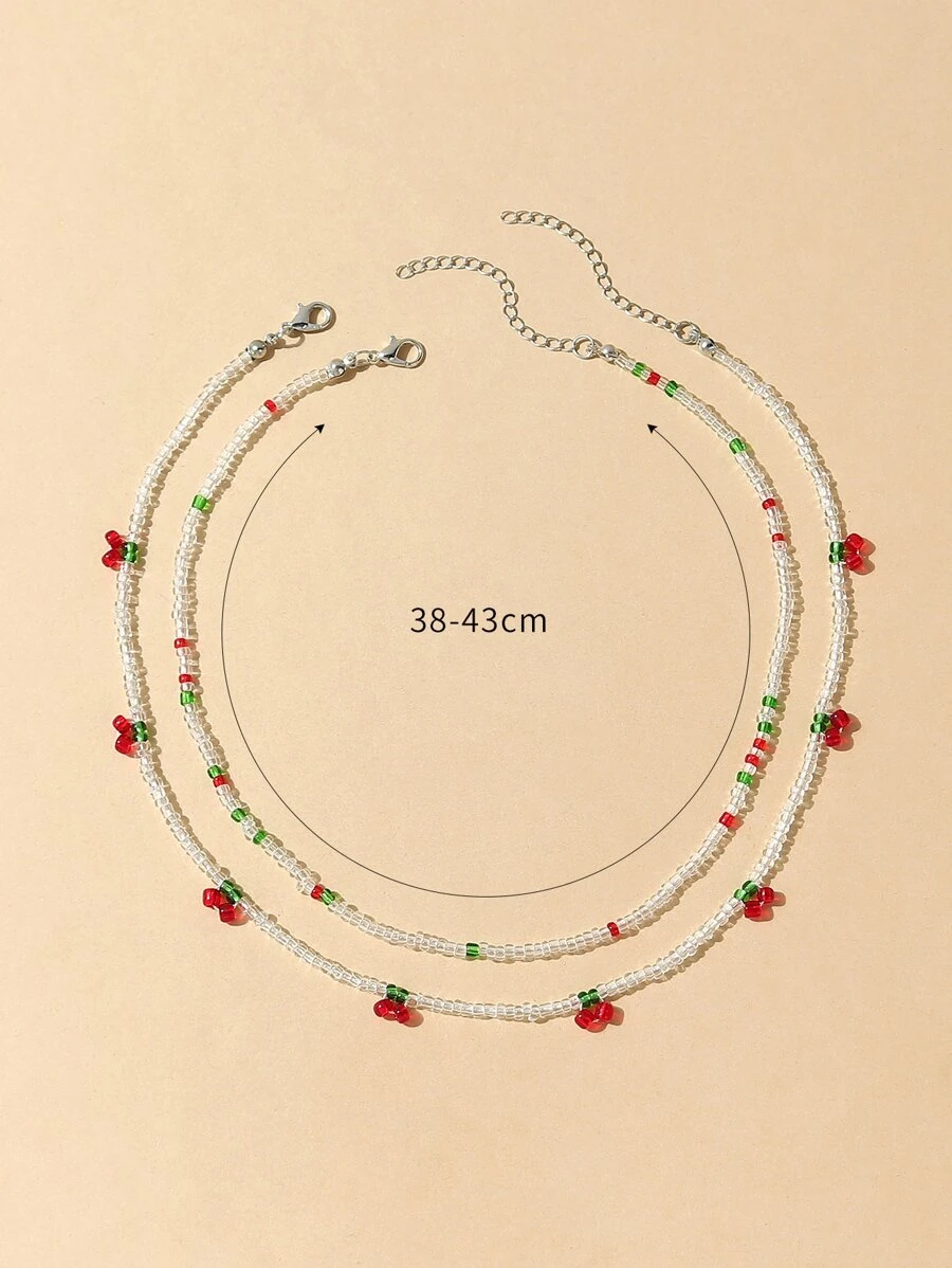 สร้อยคอประดับลูกปัดเชอร์รี่ 2 ชิ้น kk-84