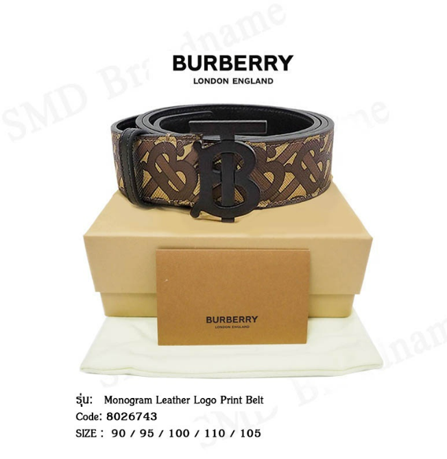 - สายเข็มขัดสีน้ำตาลพิมพ์ลายสัญลักษณ์ TB ทั้งสาย