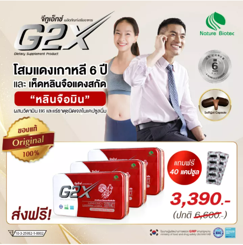 Product details of NATURE BIOTEC เนเจอร์ไบโอเทค / G2X จีทูเอ็กซ์ (60 แคปซูล) 3 กล่อง : แถมฟรี 40 แคปซูล โสมแดงเกาหลีผสานเห็ดหลินจือแดง มาตรฐานประเทศเกาหลี