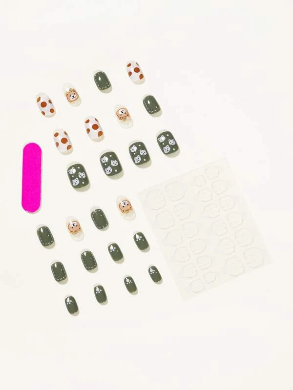 24 ชิ้น เล็บปลอม ทรงเหลี่ยม ยาว & ตะไบเล็บ 1 ชิ้น & เทป 1 แผ่น c-18