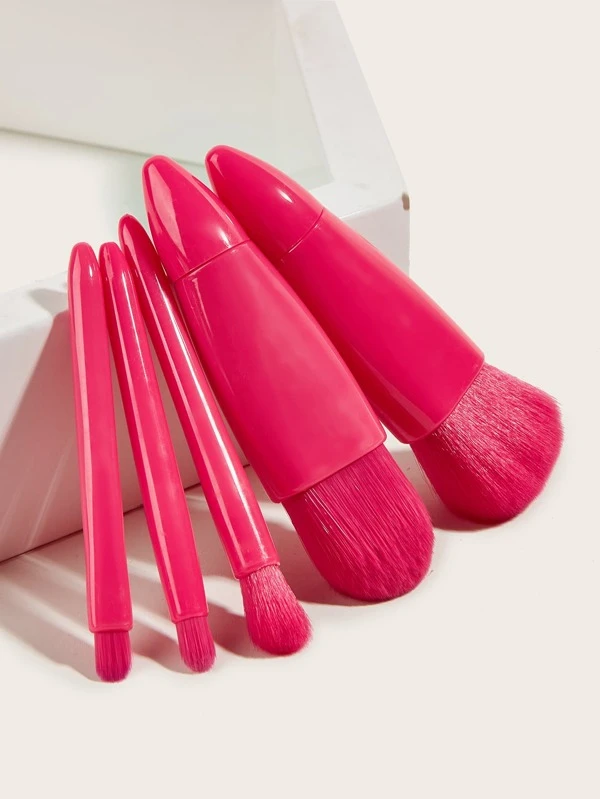 5 ชิ้น สีพื้น เซ็ต แปรงแต่งหน้า พร้อม กล่องเก็บของ e-91