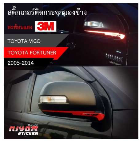 สติ๊กเกอร์ติดรถ 3m สะท้อนแสง TOYOTA ติดกระจกมองข้าง ซ้าย-ขวาเป็นสติ๊กเกอร์สำหรับภายนอกโดยเฉพาะ ตัดประกอบโดยช่าง สีไม่ลอก 100% เพราะไม่ใช่งานพิมพ์ทนต่อการขีดข่วน ล้างรถ หรือสารเคมีอื่นๆ ทนความร้อนได้สูงโดยไม่ยืด กาวไม่เยิ้มใช้สติ๊กเกอร์ติดรถอย่างดี เกรดพรีเมี่ยมใช้ติดเพื่อความสวยงามของยานยนต์เป็นสติ๊กเกอร์สะท้อนแสง 3m กันแดด กันน้ำ 100%