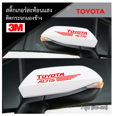• สติ๊กเกอร์ติดรถ 3M สะท้อนแสง TOYOTA ติดกระจกมองข้าง ซ้าย-ขวา