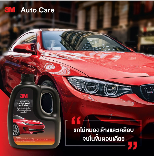 ? 3M CAR WASH WITH WAX 1000ML. ผลิตภัณฑ์แชมพูล้างรถ สูตรผสมแวกซ์ ทั้งล้างและเคลือบเงาในขั้นตอนเดียว