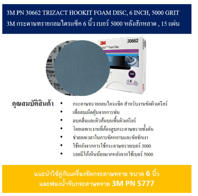 3M PN 30662 TRIZACT HOOKIT FOAM DISC, 6 INCH, 5000 GRIT