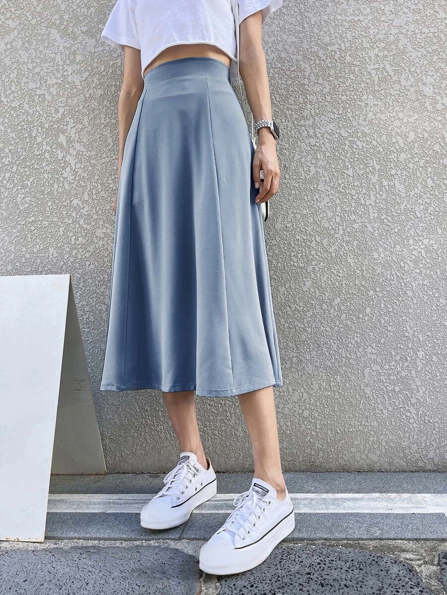 DAZY เดรส สีพื้น เอวสูง ทรงบาน jj-67