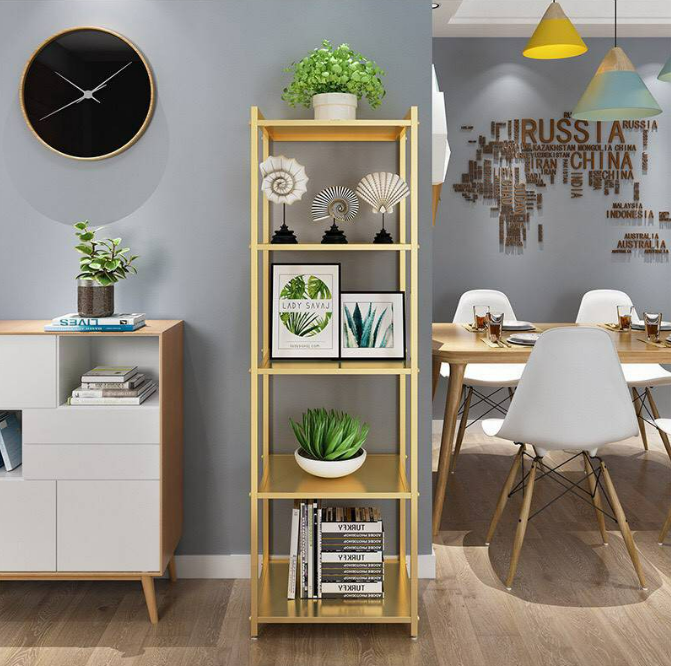 ชั้นวางทรงสูง 5ชั้นสีทอง วัสดุเหล็กอย่างดี แข็งแรง วางของตกแต่งบ้าน สวยมากค่า ✔️ขนาด : 50*40*160 ซม.