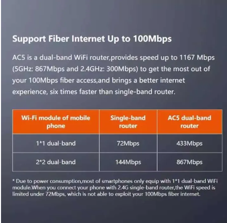 • รองรับคลื่นความถี่ 2.4Ghz / 5Ghz อัตรารับส่งข้อมูลสูงสุด 1167 Mbps(2.4Ghz :300Mbps+ 5Ghz :867Mbps)